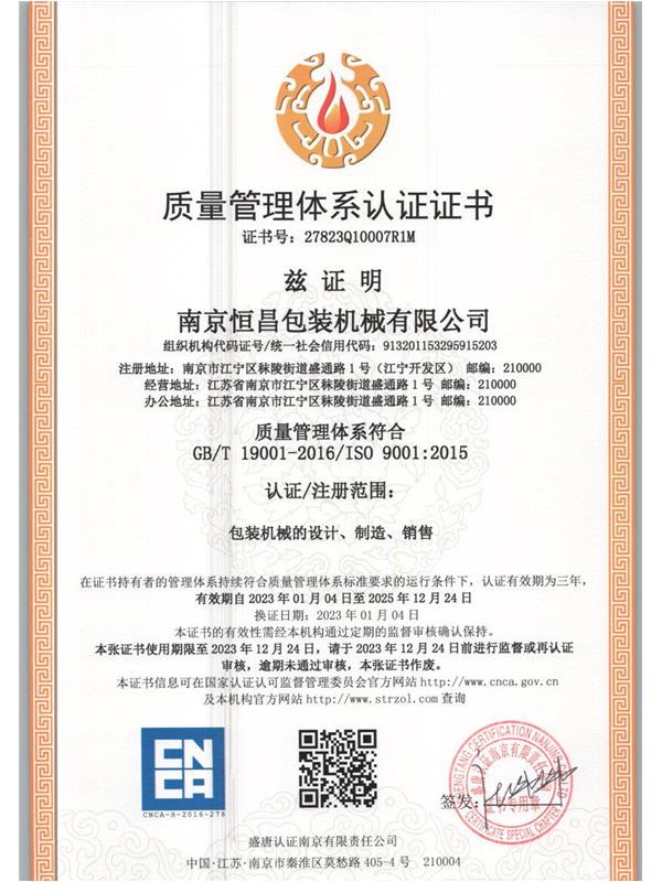 南京恒昌包裝機械有限公司致力于液體包裝系統(tǒng)整線方案的設計制造安裝,其前身為南京恒昌輕工機械有限公司。